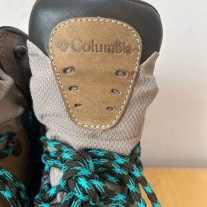 Stay warm and dry in any terrain with these Columbia hiking boots. Tan and black design with durable construction. Perfect for any weather, all terrain adventures. Great condition. Refer to photos.