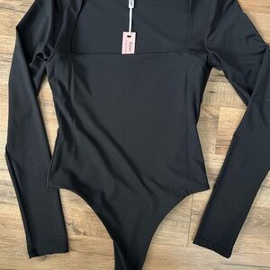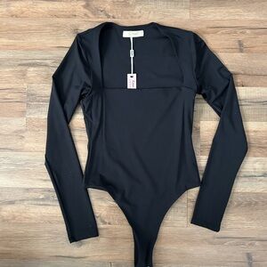 Elegant square neck black shape wear bodysuit. Perfect for any occasion.size small