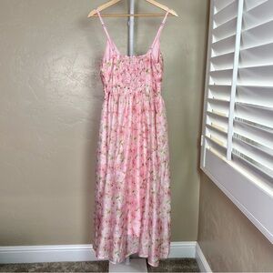 En Saison Sedna Pink Floral Satin Midi Dress Small Cottagecore Romantic