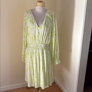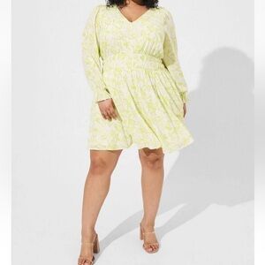 Torrid 2X neon green combo soft gauzy skater dress. Elasticized waist and sleeve hem, lined , pockets and in great condition.