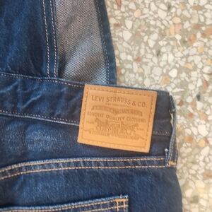 Chic Levi's denim overalls. Rich indigo color. Features adjustable straps and front pocket. Slimmer fit. Retail 128. Tags attached.