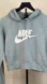 Soft and stylish Nike cropped hoodie in a light blue-gray shade. Classic white Nike logo across the chest. Medium weight, perfect for layering. Ribbed cuffs and hem, adjustable drawstring hood.