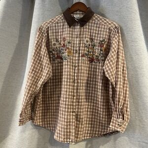 VTG Casey & Max Top Women Large Button Down Cottagecore Cabin Floral Cotton