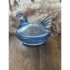 Hen On Nest. Glowing Hen On Nest. Blue Hen On Nest