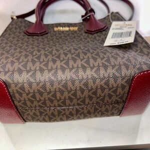Michael Kors Mercer Medium Messenger Satchel Brown MK Logo Merlot Leather Crossb