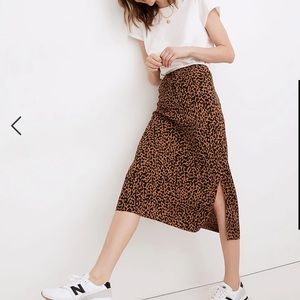 Stylish midi skirt with a bold leopard print. Perfect for casual outings or dressing up.