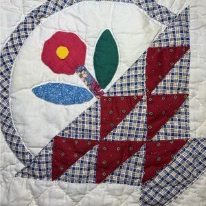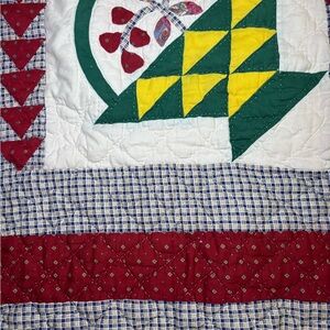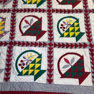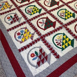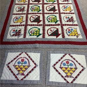 Vintage Patchwork Quilt Flower Basket With Shams 78x79 Appliqué Quilted