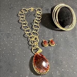 This exquisite necklace set features a gold chain with a striking brown gemstone pendant. Perfect for enhancing your style with elegance.