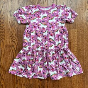 EUC pouff shoulder short sleeve dress in light pink with blue and red cherries print. Lined. Buttons down back. 100% cotton. So classic and sweet.