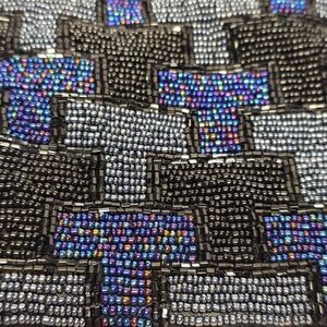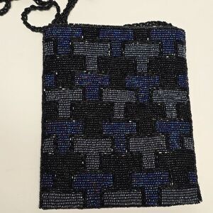 Vintage Hand beaded Monogram T Evening Purse Boho Crossbody Black Gray Purple