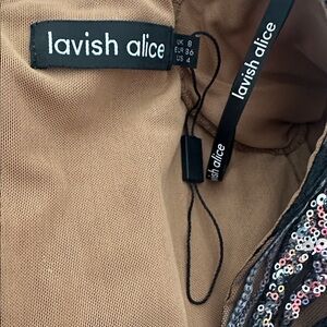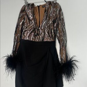 LAVISH ALICE Elegant Black and Brown Feathered Dress