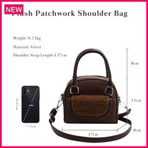 Small Velvet Lamb Wool Tote Shoulder Crossbody Bag Adjustable Strap