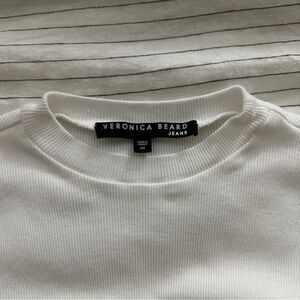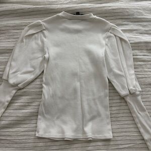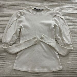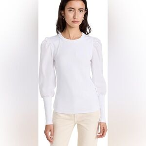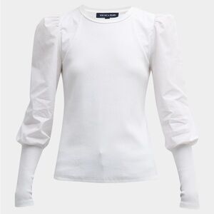Veronica Beard Lyon Top White Ribbed Puff Long Sleeve Top