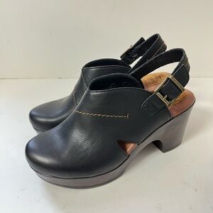 B O C BY BØRN Cecila Black Leather Mules Platform Clog with Buckle