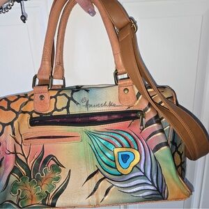 Genuine leather hand painted Anuschka Colorful Butterfly, and Peacock Design