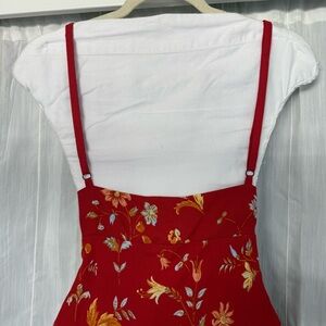 Keywords: Reformation Juliette Dress Red Floral Midi Bias Cut Cottagecore Romantic Sustainable Made in USA Borsa Print Date Night Summer Wedding Guest