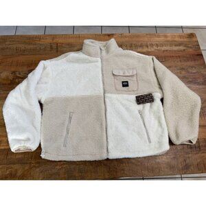 Vans Sherpa Lined Jacket Womens XL Fleece Avondale Cream Beige Full Zip Checker
