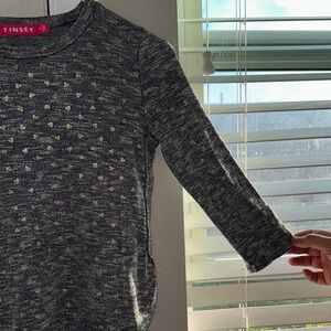 Tinsey girls size small Charcoal Gray with Gold Heart print crew neck Tunic