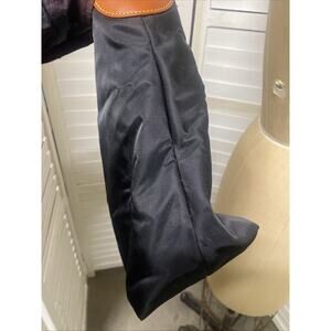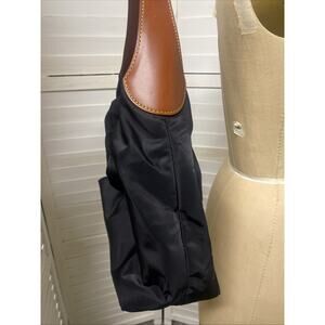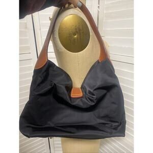 Dooney & Bourke Slouchy Hobo Bag, Logo Lock. Black Nylon, Brown Leather Trim