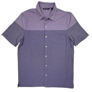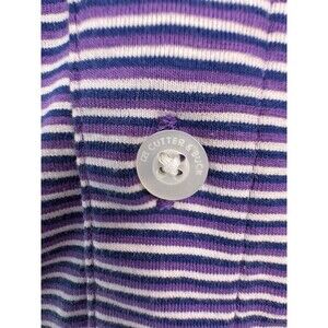 Cutter & Buck Pioneer Engineered Stripe Purple Button Front Golf Polo UPF 50+ L