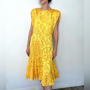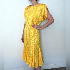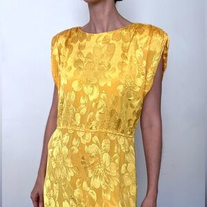 Brighten your wardrobe with this elegant yellow floral midi dress. Perfect for any occasion, this dress offers a flattering fit and a vibrant look.