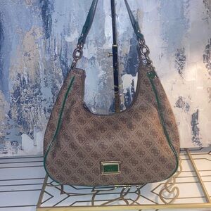 NWOT Guess HOBO Calista Satchel Brown and Green Designer Women's Bag