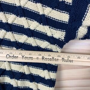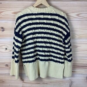 Madewell Cable-Knit Oversized Sweater Small Navy Stripe Preppy Nautical Chunky