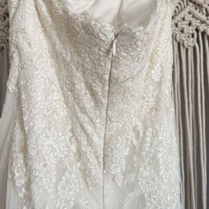 Pronovias / San Patrick Off-White Strapless Wedding Gown Size 12 Long Train GUC