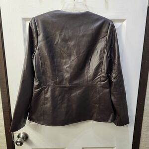 NWT Elli Tahari V Neck Faux Leather Single Button Chocolate Brown Jacket.