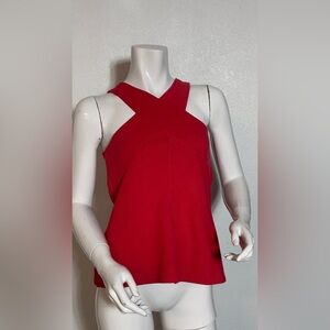 Stylish red tank top. Features a unique cross-strap design. Perfect for casual outings.