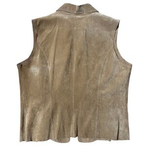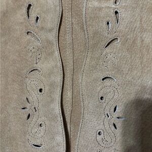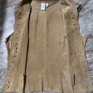 Coldwater Creek TAN 100% leather VEST open front with lace cut outs size L