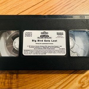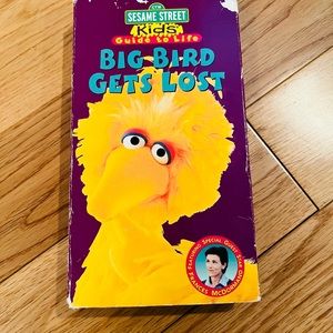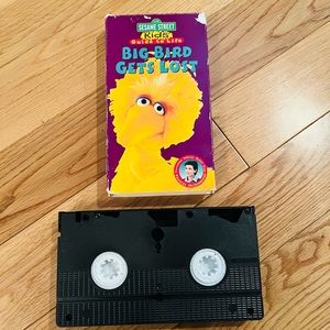 Sesame Street Kids Guide to Life “Big Bird Gets Lost” vintage VHS tape from 1997. Featuring Frances McDormand!! Great tool for teaching kids about sticking together so they don’t get lost. Cute, catchy, easy to learn, sing along songs. Cardboard box is a bit beat up but still holds tape well.