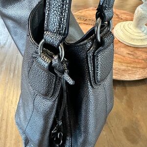This elegant Coach Edie 31 metallic gunmetal leather tote bag is perfect for any occasion. Its sleek design and high-quality material make it a must-have accessory. Ideal for both casual and formal settings. It’s a three compartment bag, big enough to fit all your essentials. This bag is in preloved condition. There is some rubbing on the corners and some slight color transfer on the body of the bag. Please inspect all photos for more details. Ask any questions prior to bidding.