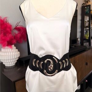 vintage belt, wide stretch belt, black waist belt, silver tone belt, statement belt, sculptural belt, boho belt, western belt, elastic waist belt, cinch belt, festival belt, edgy accessories, retro belt, unique belt, costume belt, bold belt, women’s vintage accessories