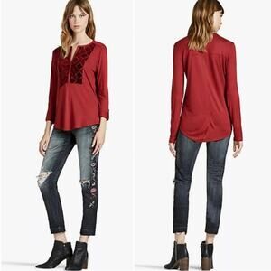 Lucky Brand Bourbon Velvet Henley shirt top size Medium