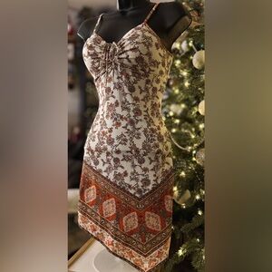 Stylish dress with floral design. Features delicate straps and a flowy silhouette.