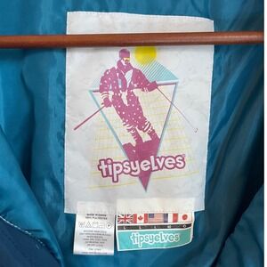 Tipsy Elves Blue Retro Geometric One Piece Ski Suit Jumpsuit Men's Large Snow