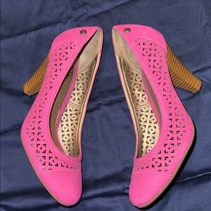 Elegant fuchsia heels with cutout design. Comfortable and stylish for any event.