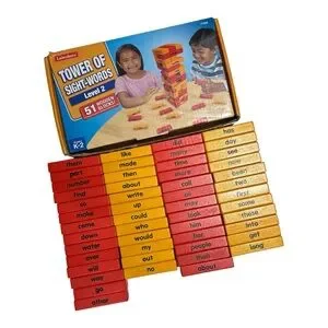 Engage your child with the Tower of Sight-Words Level 2. This colorful set includes red, orange, and yellow blocks to make learning fun and interactive.