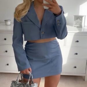 Stylish light blue cropped blazer from Zara. Perfect for a modern look.