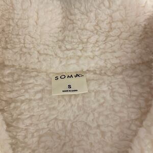 Excellent condition, Soma size small cream color sherpa with two outside pockets and three-quarter zip with collar. see pictures for armpit to armpit and length measurements.