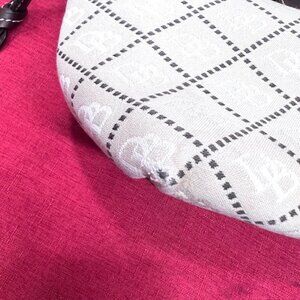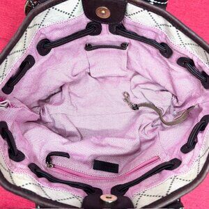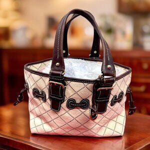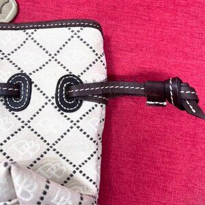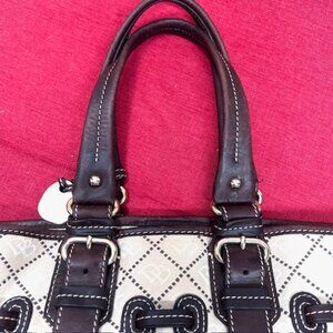 DOONEY BOURKE Shoulder Handbag Satchel Purse Beige Brown Jacquard Leather Trim