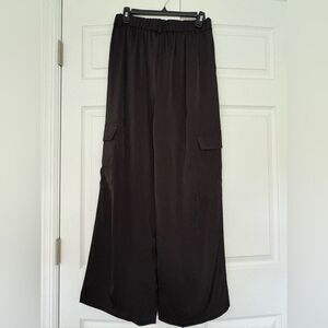 New with tags, San Souci Wide Leg Pant GSP1136 Black Size M. Elastic waist with belt loops and two pockets. 95% polyester and 5% spandex - hand wash cold. See pictures for inseam and waist measurements.