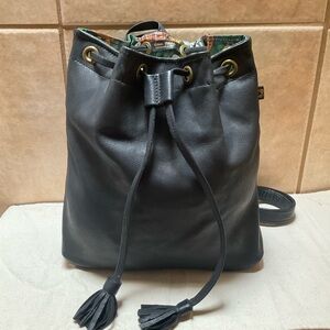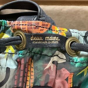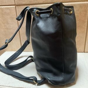 Deux Mains Black Leather Drawstring Backpack small bag rubber bottom
