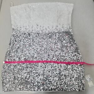 Retrofête White Silver Strapless Sequin Kameron Embellished Mini Dress XLarge