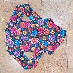 Mott50 girl one piece long sleeve rash guard. Size 10. Black, pink, purple, blue, and orange floral. Back zipper. Great condition.