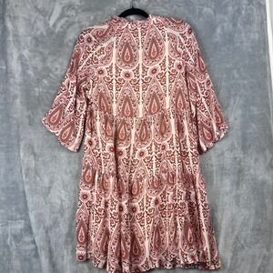 Spartina 449 Paisley Tiered Mini Dress Pink Orange Boho V-Neck Pockets Size M