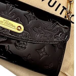 Vernis Sunset Boulevard Bag by Lous Vuitton. EUC. No flaws or stains. This Louis Vuitton Vernis Sunset Boulevard bag is a timeless and elegant piece crafted from monogram-embossed patent leather in a rich brown shade. The glossy Vernis finish showcases the iconic LV monogram subtly embossed throughout, giving it a luxurious, high-shine look. Finished with gold-tone hardware, It features a flap closure and can be worn as a shoulder bag or carried as a clutch, making it perfect for evenings out, special occasions, or elevating everyday outfits. The patent leather exterior is both eye-catching and durable, while the interior offers space for essentials such as a phone, wallet, and keys. This bag includes the original Louis Vuitton box and dust bag, making it ideal for collectors or as a gift-worthy purchase.