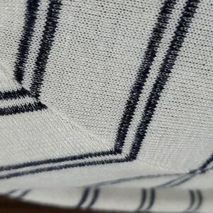 soft light knit striped top long sleeve by magaschoni grey black onr white no issues excellent condition size small shown on size 6 mannequin