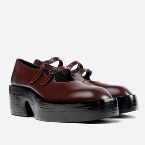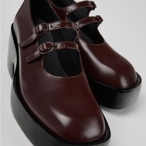 NWOT Camper Billie Platform Mary Jane Heeled Leather Shoes in Burgundy
